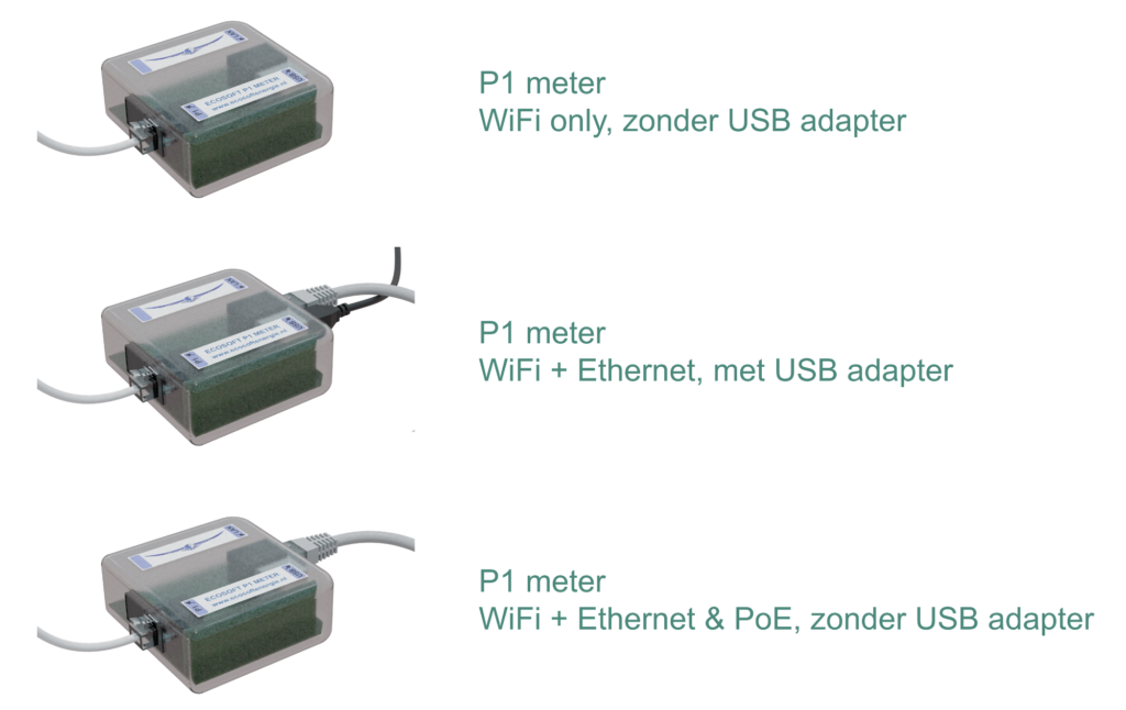 Er zijn dus drie types. Elk type kunt u bestellen met 1 jaar of 3 jaar P1-meter licentie.